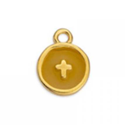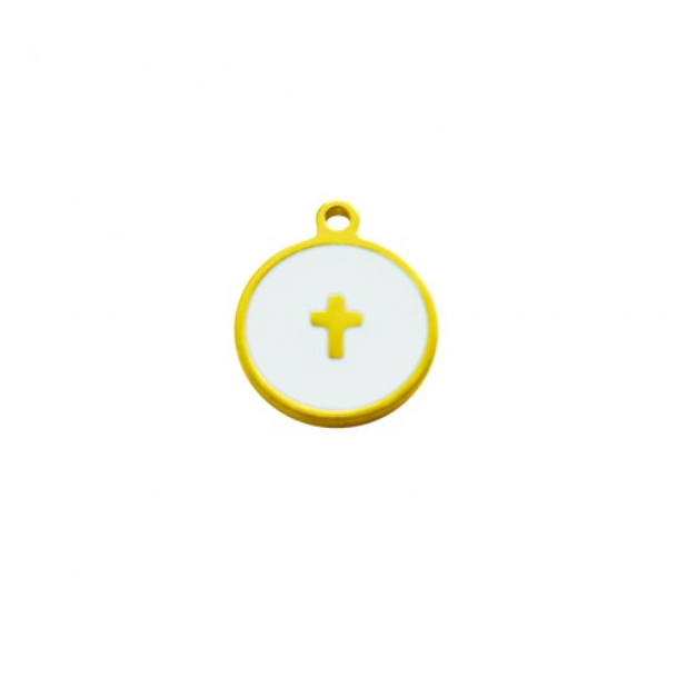 Lleva tu fe con un estilo único. Este colgante presenta un diseño lleno de significado: un medallón redondo de 10mm bañado en oro con la Cruz grabada o en relieve, suspendido de un cordón de alta resistencia.