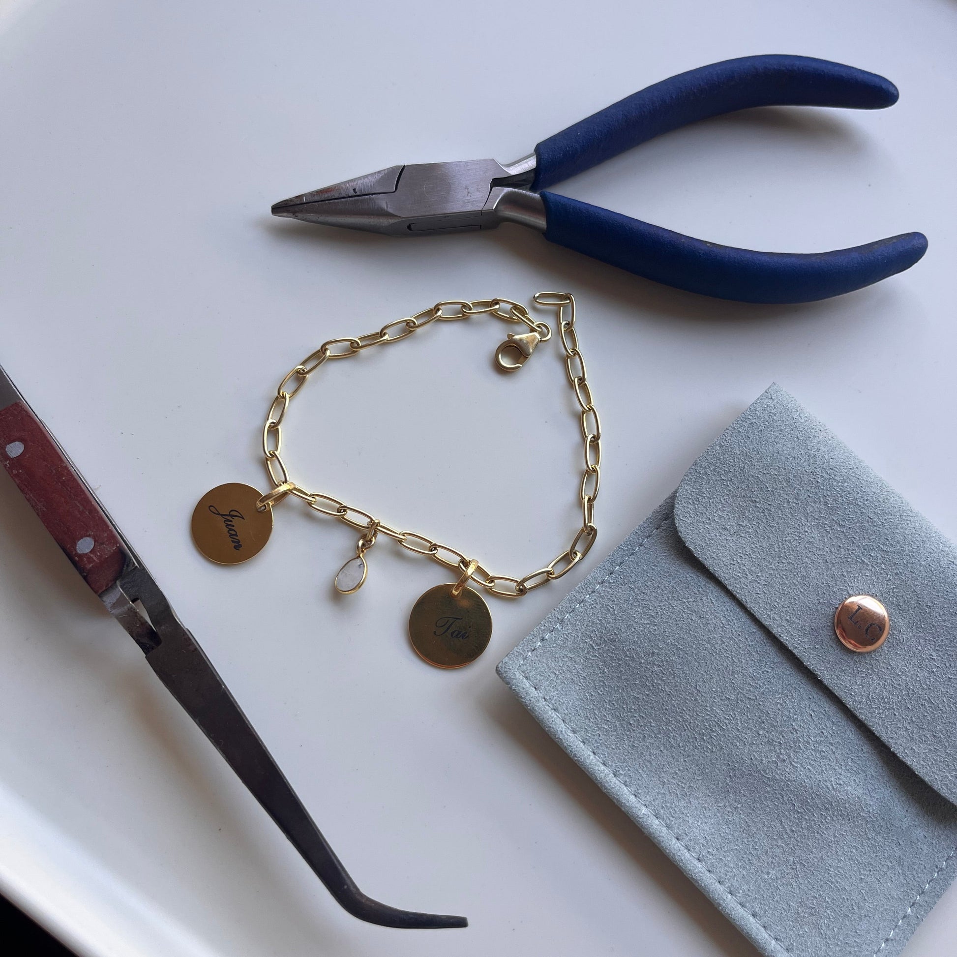 Esta pulsera eslabonada en Plata de Ley bañada en Oro 18k combina la moda de cadena chunky con la delicadeza de la personalización.